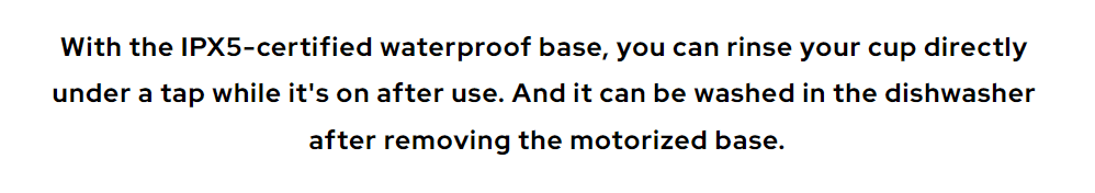 Easy Clean: Simply rinse your VortexBoost self stirring protein shaker under the tap without worrying about getting the base wet. Better still, you can switch on the self stirring protein shaker under running water for faster cleaning.