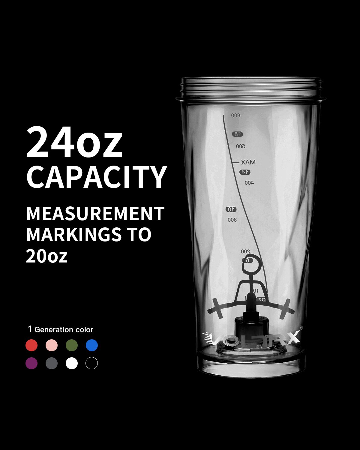 A Shake to Stir Revolution: Before VOLTRX transformed the shaker industry, a steel wire ball shaker bottle that produced a clanging noise and cleaning nightmares was the only solution to reducing caking. Now the clumping, noise, and cleaning hassles are annihilated by VOLTRX’s patented technology. Blend SQUASHED Banana In: Thanks to the powerful base, you can now add SQUASHED bananas to your drink. Gallium electric shaker bottle quickly blends the SQUASHED bananas and liquid together to deliver a smooth drink. 15 Seconds To Smooth: The VOLTRX Gallium electric protein shaker bottle uses a powerful 6000rpm motor with a patent blade design and patent transmission structure design, allowing protein powder to dissolve in liquid within 15 seconds. Brace yourself for the silkiest, smoothest shakes imaginable! Airtight & Watertight: VOLTRX Gallium electric shaker cup feature the most reliable screw-on top design so that every drop stays in the cup and won’t make a mess. Pack the Gallium electric mixer cup in your gym bag with total confidence. Perfect Size: The 24oz/700ml (marking goes to 20oz/600ml) size is not too bulky and able to mix 16oz (480ml) of liquid and 3 scoops of powder with ease! Perfect for even the biggest bodybuilders.