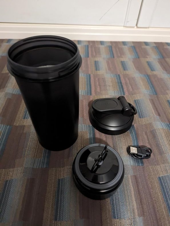 As you can see from the video, the mixing mechanism is really easy to use and mixed up protein powder super well. It unscrews from the bottom of the cup for easy washing, and after 10+ uses, I have not had any problems with the battery.